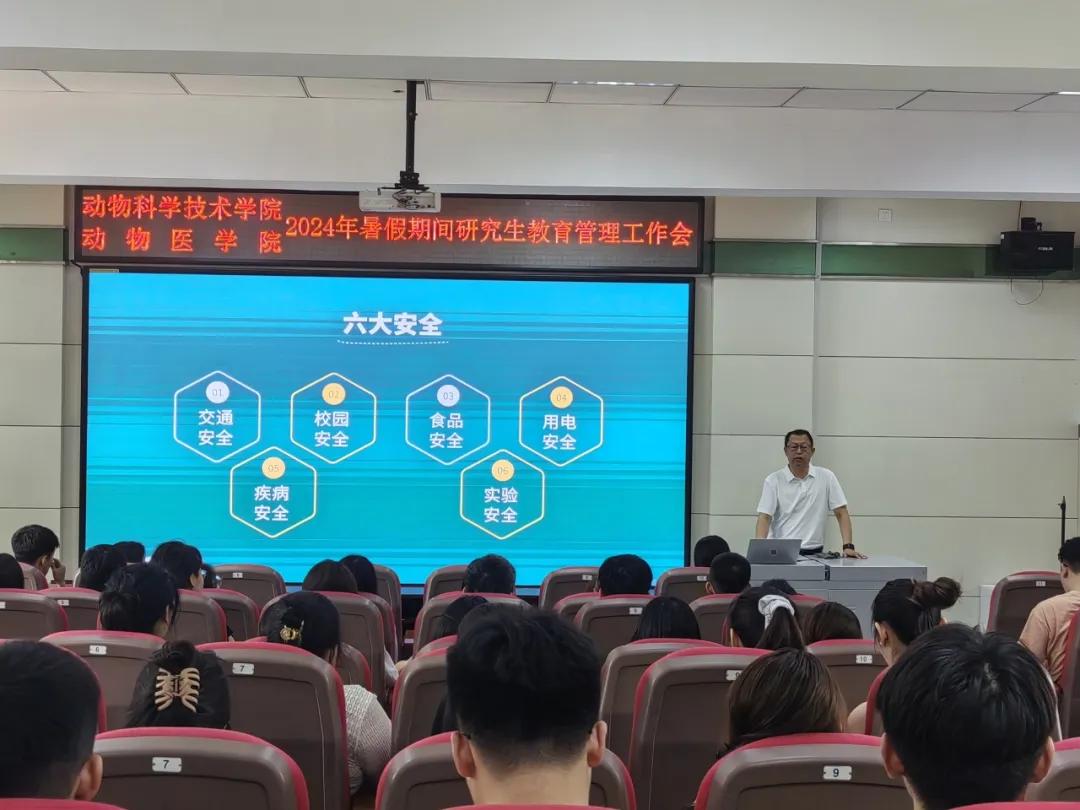为全面做好暑假期间研究生管理及安全教育工作,7月2日、7月3日,学院在动科楼第一阶梯教室和创新楼4楼会议室召开2024年暑假期间研究生教育管理工作会议。学院党委书记马洪新、全体留校研究生参加会议。会议由研究生辅导员聂师豫主持。