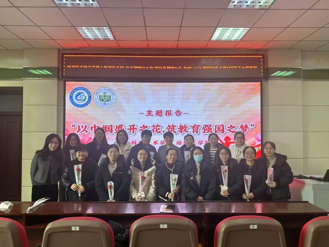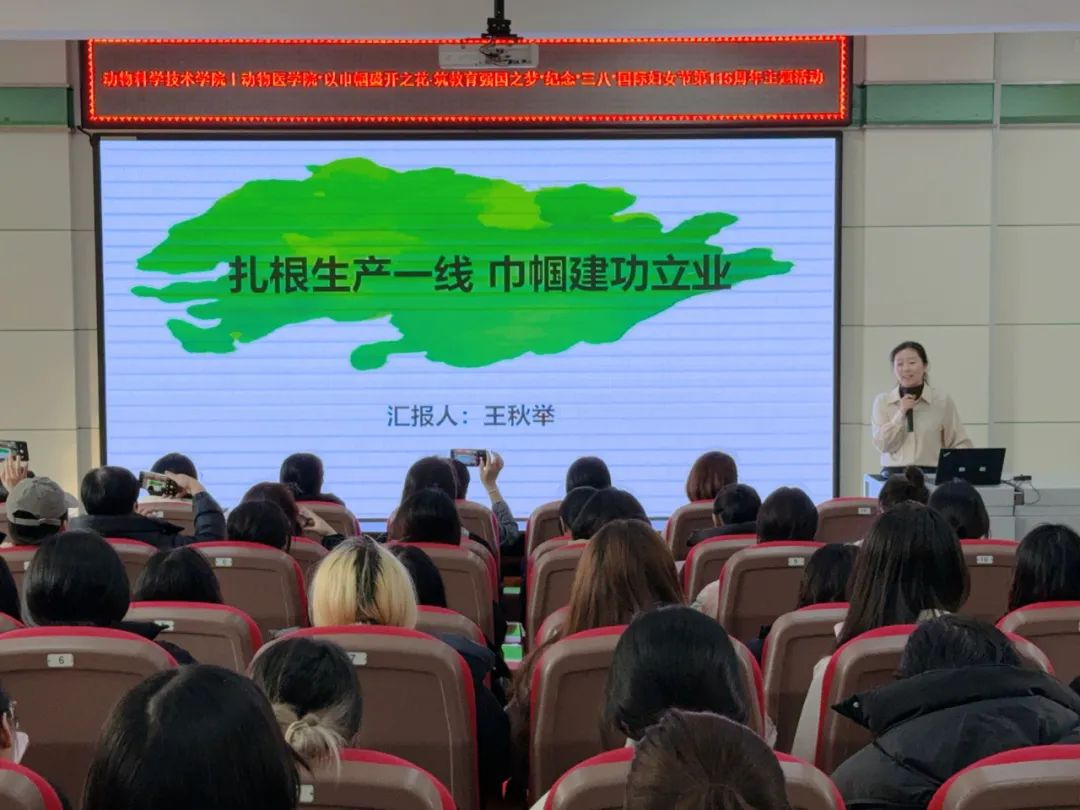 3月6日,动物科学技术学院、动物医学院工会(妇委会)开展了“以巾帼盛开之花·筑教育强国之梦”纪念第115个“三八”国际劳动妇女节主题活动。活动邀请长春市三八红旗手、公主岭稻渔科技小院首席专家、水产养殖学系王秋举老师担任主讲嘉宾。