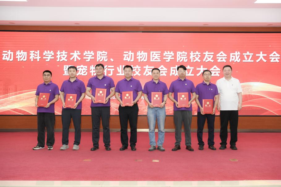 学校校友工作办公室主任、校友总会秘书长程军为吉林农业大学宠物行业校友会第一届理事会会长、副会长、秘书长、副秘书长代表颁发聘书。