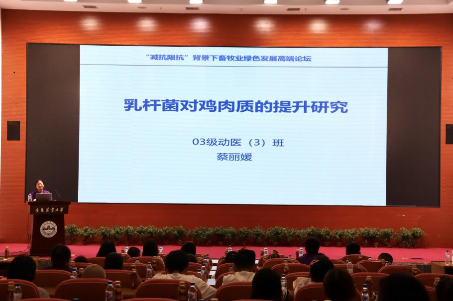 会后,学院举办了“减抗限抗”背景下畜牧业绿色发展高端论坛。1977级畜牧专业校友、大连理工大学教授徐永平,2003级动物医学专业校友、湖北绿科乐华生物科技有限公司技术总监蔡丽媛和2014级预防兽医学专业校友、宝来利来科技集团副总裁谷巍分别作报告。