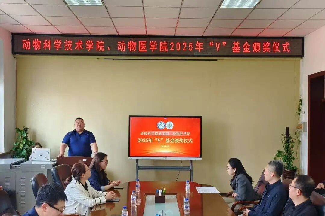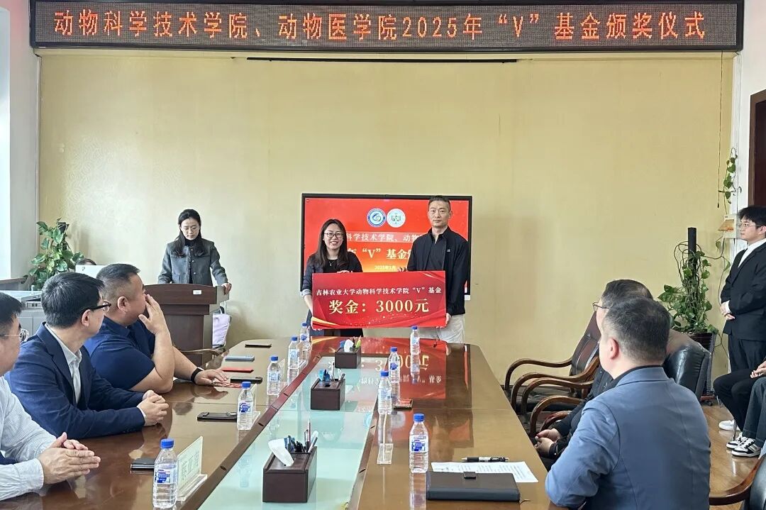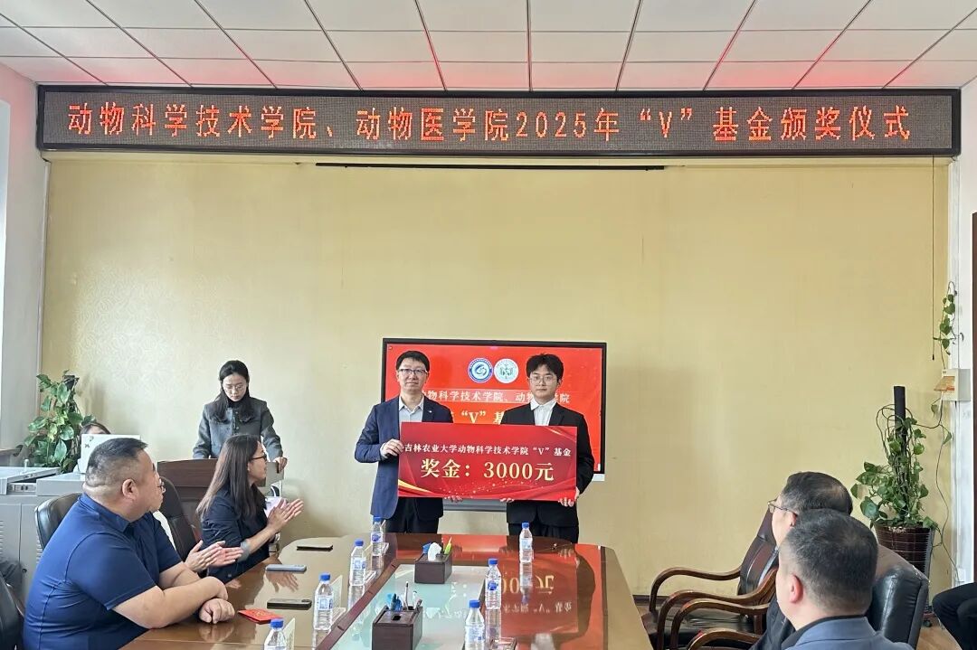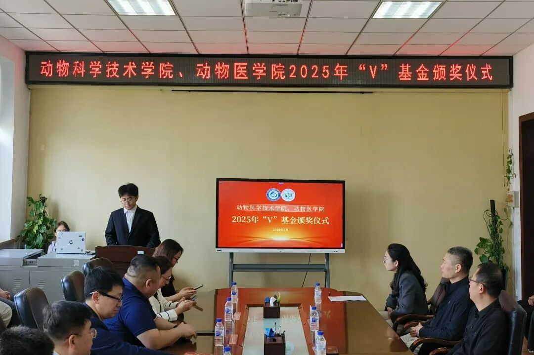 5月16日下午,动物科学技术学院、动物医学院2025年“V”基金颁发仪式在学院四楼会议室隆重举行。 2004级预防和基础兽医学硕士研究生班同学代表及学院相关领导参会。